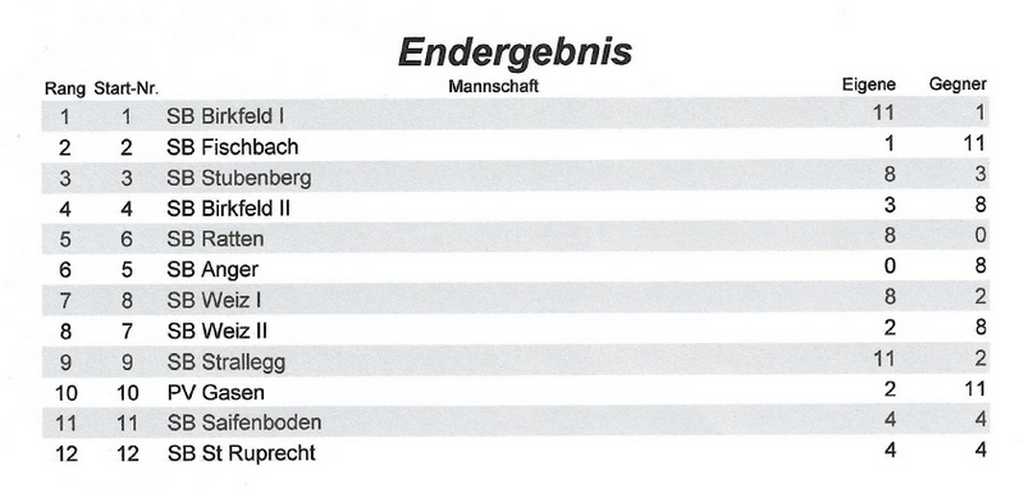 Der 1. Rang ging an die Mannschaft des SB. Birkfeld 1
