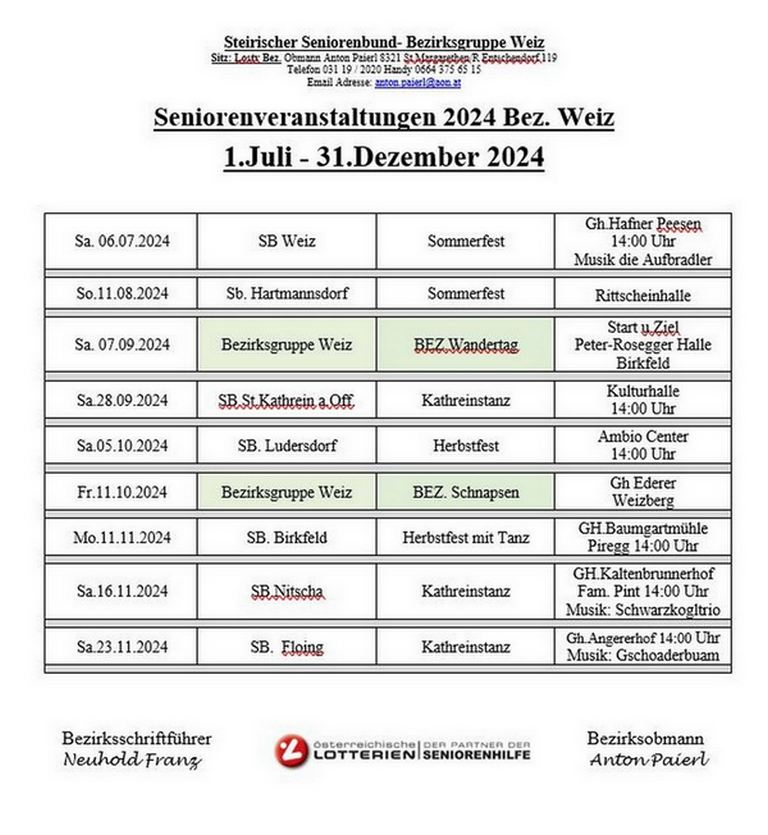 Alle Veranstaltungen Bezirk Weiz 2024