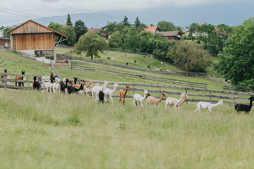 Eingebettet inmitten des wunderschönen Grazer Schöckllandes und gleichzeitig ganz in der Nähe der Stadt Graz, laden wir dich ein, unsere große Alpakaherde kennenzulernen und deinen Alltagsstress bei uns am Hof zu vergessen.