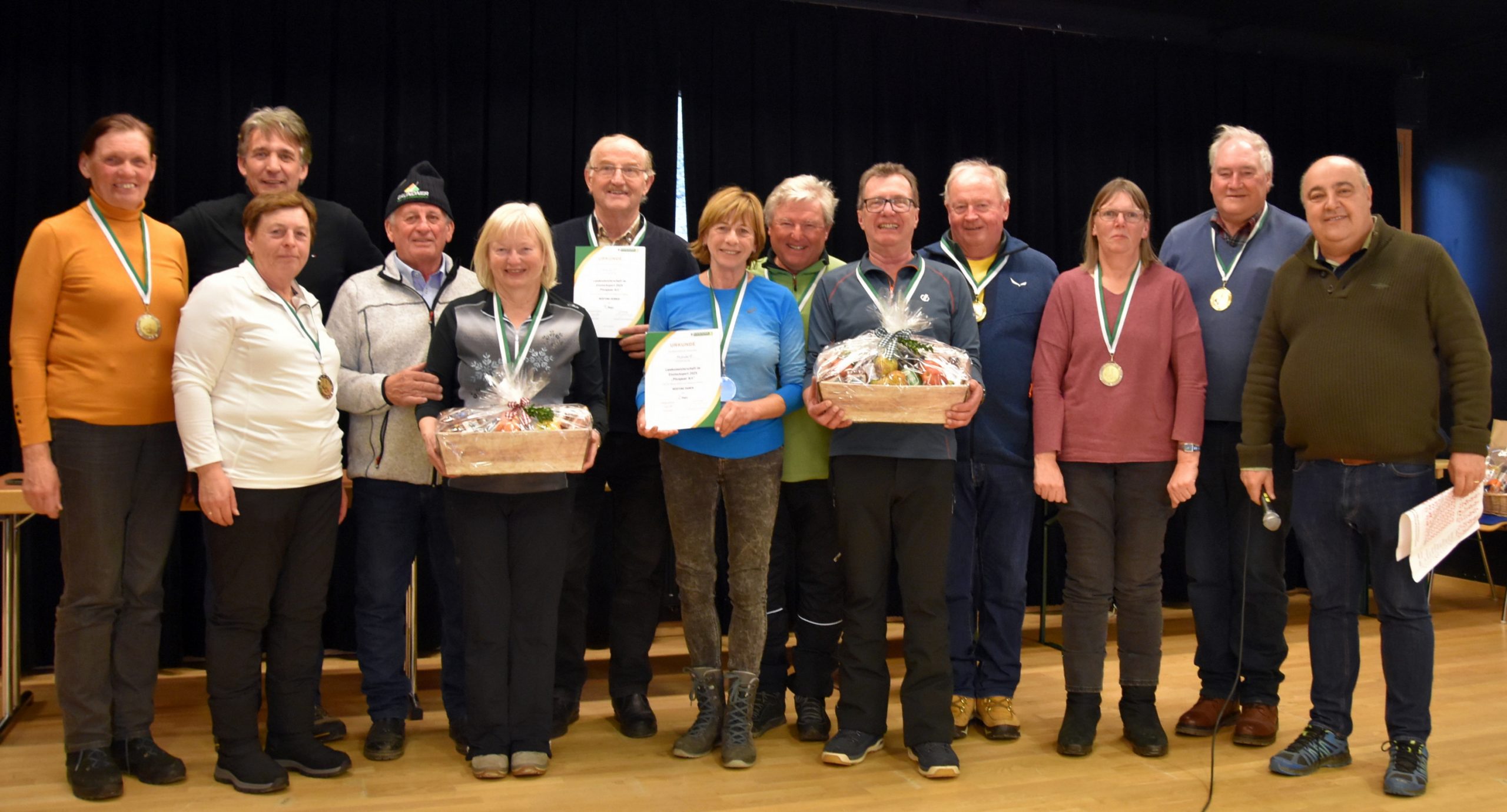 Begrüßt von Landesgeschäftsführer Friedrich Roll, Landesobmannstellvertreter Erich Zeiringer und Ortsobmann Heinrich Schiefer lieferten sich 8 Damen- und 11 Herrenmannschaften sehenswerte Duelle. Können und Glück auf ihrer Seite hatten eindeutig die „Hauser“. Die Männer gewannen mit 22,6 Punkten und wurden Landesmeister, die Frauen mussten nur den Landesmeisterinnen aus Irdning den Vortritt lassen und eroberten mit 13,5 Punkten den 2. Platz.