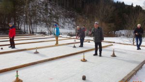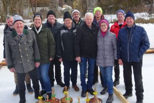 Die Eisbahnen bei der Feuerwehr Rachau waren Schauplatz spannender Duelle mit den steirischen Holzstöcken. Eismeister Josef Wechselberger zauberte auch heuer wieder perfekt präparierte Bahnen „aus dem Ärmel“, auch das Wetter spielte toll mit. So gab es am Ende unter den 18 Teams ein Spielberger Duell um den Tagessieg.