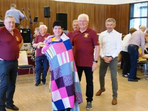 In der Pause tanzten schon aus Tradition die „Tanz mit Gruppe“ , die von der Obfrau Anneliese Fuchs in Leben gerufen wurde. Die große Decke war der Ehrenpreis, gespendet von der Obfrau A. Fuchs, die von ihrer Mama Frau Gertrude Konrad gestrickt wurde