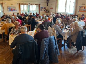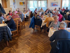 Auf jedem Tisch standen große Suppentöpfe bereit. Danach wurden köstliche Ganserlportionen mit Schenkel und Bruststück serviert, und zum krönenden Abschluss durfte die berühmte Hadntorte nicht fehlen. Kleine Spaziergänge oder eine Runde Kartenspielen verkürzten die Zeit bis zur Abfahrt. Bei herrlichstem Wetter ging es schließlich über die Soboth wieder zurück in die Heimat.