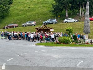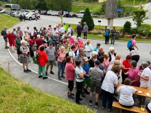 Bei der Dorfeinfahrt von Hirschegg trafen mehr als 200 Interessenten an der gemeinsamen Wanderung der Seniorenbünde aus Deutschlandsberg und Voitsberg ein.