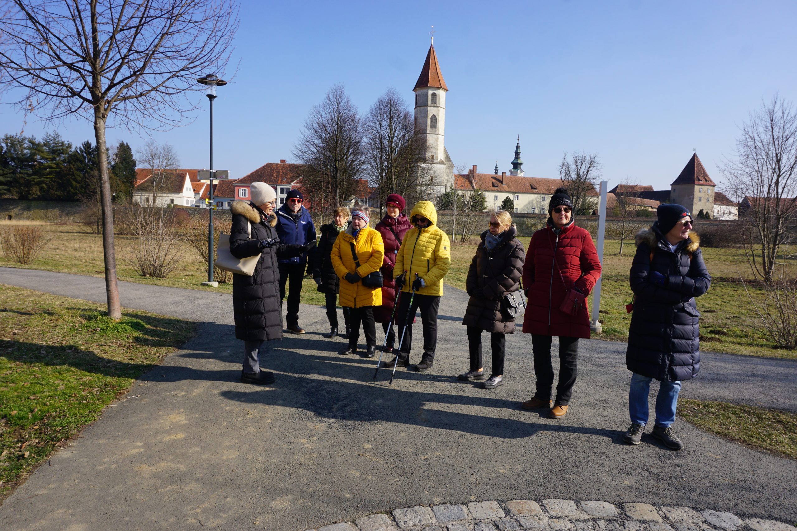 Bei sonnigem Wetter spazierten die SeniorInnen zum Vita med der Parktherme. Dort konnte die Stadtquelle beim alten historischen Trinkbrunnen verkostet werden.