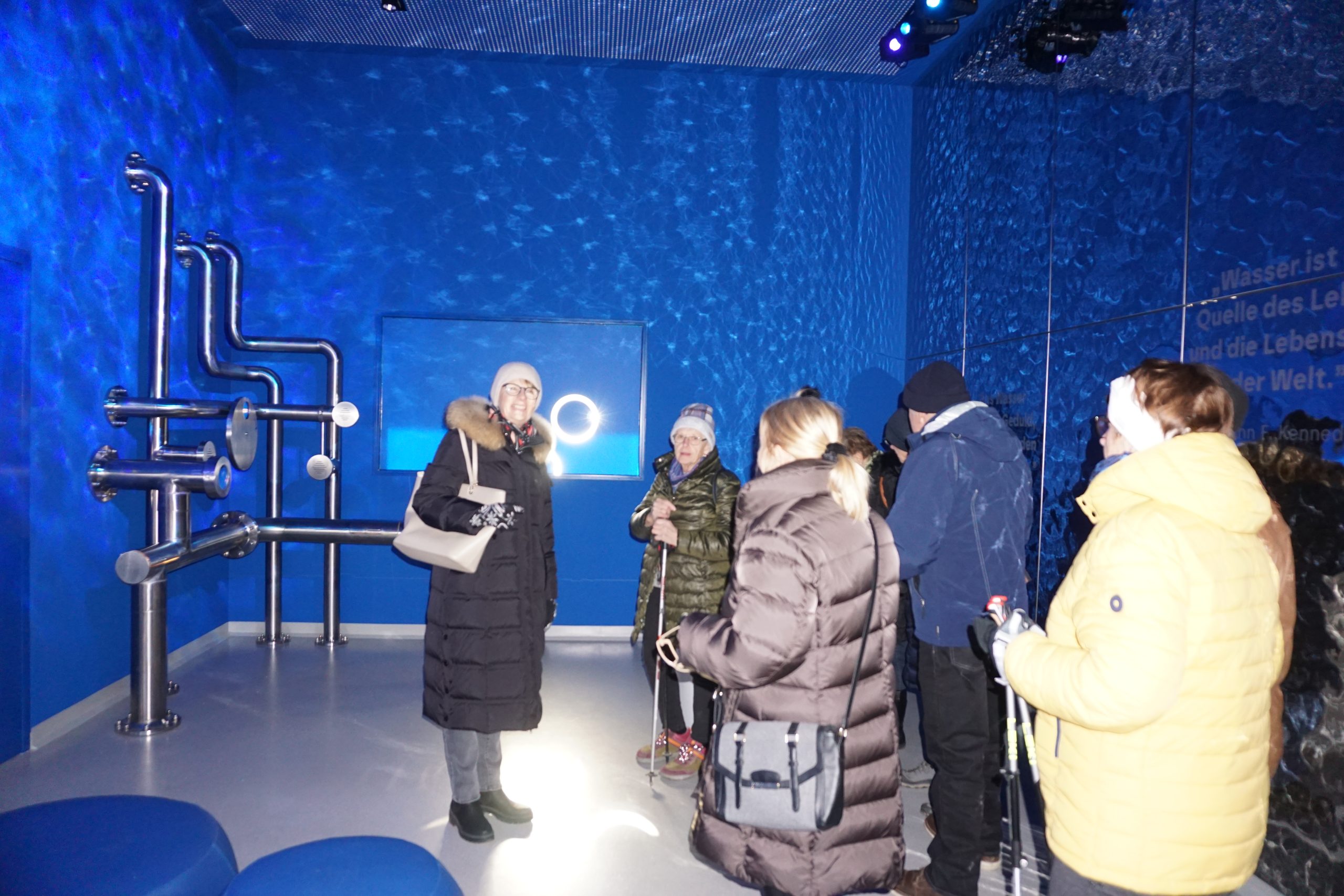 Durch den Stadtpark ging es zum Quellenhaus. Darin befindet sich die Bohrstelle der heißen Thermalquelle. Im Ausstellungsraum erklärte Frau