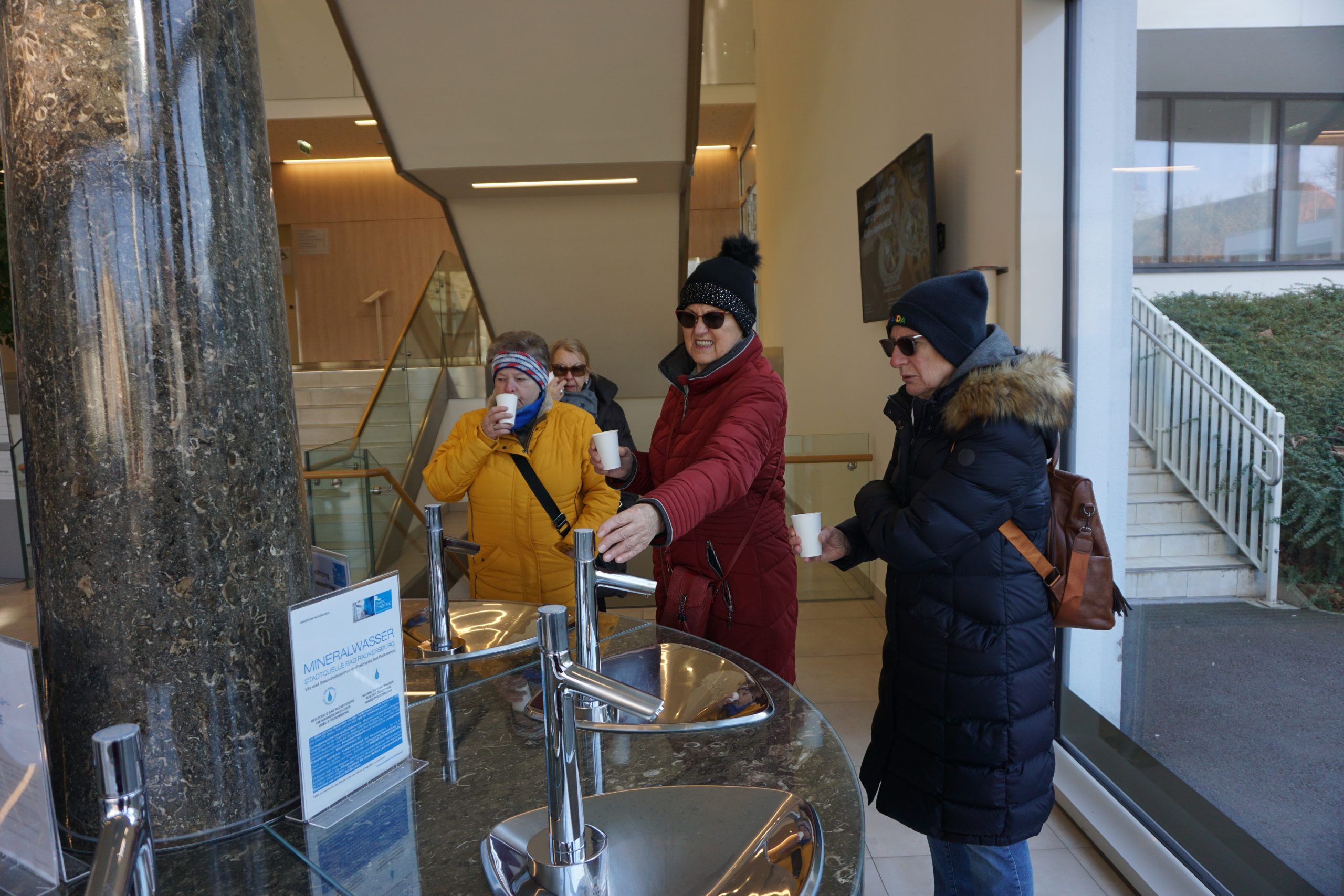 Die erste Station war bei der Sicherheitsbohrung der Stadtquelle (Nierenheilwasser), das unter dem Namen „Long Life“ als Mineralwasser vertrieben wird. Danach wurde die erste Bohrstelle dieser Stadtquelle im ehemaligen Kurmittelhaus besichtigt. Dieses wurde zum JUFA-Hotel umgebaut und beherbergt auch das Café „Wandelhalle“.
