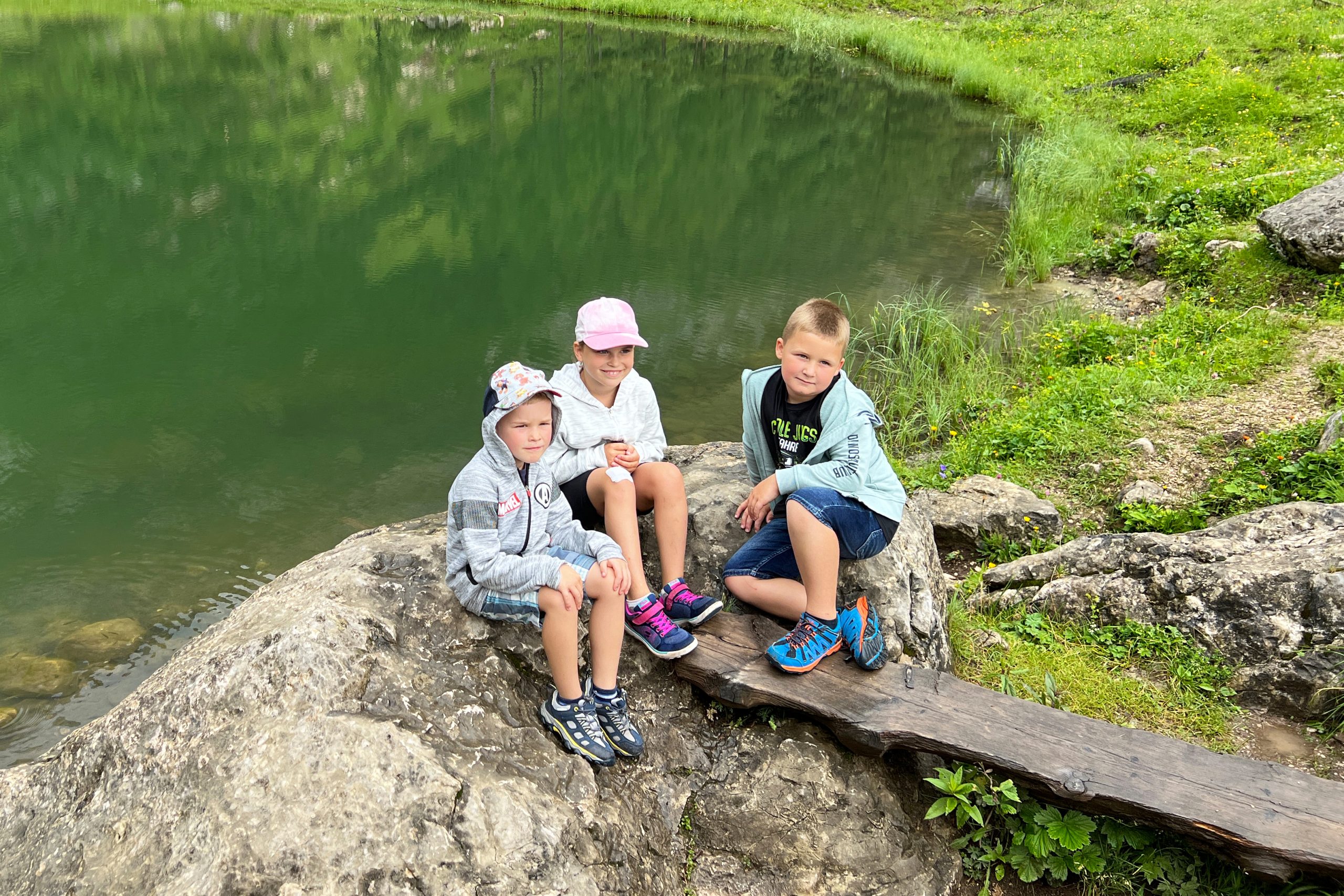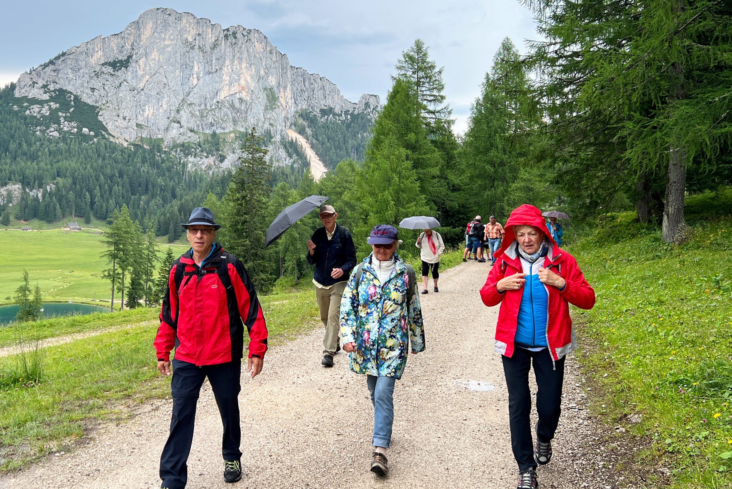 Von dort aus wanderten viele Teilnehmer bei nebelartigem Regen den Rundwanderweg „2 Millionen Jahre in 2 Stunden“ und auch zum idyllisch gelegenen Brunnsteinersee. Einige wenige versuchten sogar hinauf bis zum Frauenkar zu gelangen. Andere wiederum suchten die Hütten in der Umgebung für einen Kaffee auf.