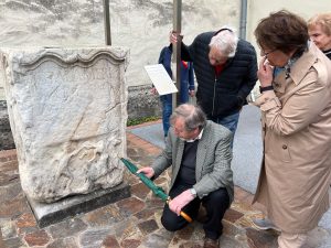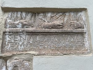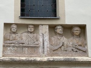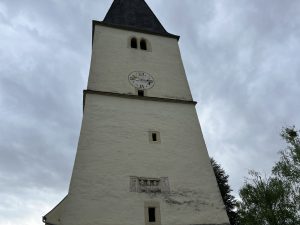 Rund um die Kirche befinden sich zahlreiche Römersteine, die Baumeister Johann Trost bei Renovierungsarbeiten anlässlich der Renovierungsarbeiten aus den alten Mauern des Kirchengebäudes ins Licht der Öffentlichkeit brachte.