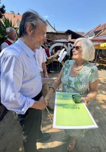 Traditionell fand bei herrlichstem Sonnenschein am 15. August 2024 das Sommerfest des Seniorenbundes Fehring statt. Da an diesem Tag auch das 25 jährige Jubiläum der Gründung gefeiert wurde, durfte unser Obmann Klaus Ronner – Ermertz viele Ehrengäste (Stadtpfarrer Christoph Wiesler, Nationalratsabgeordnete MMagaDrinAgnesTotter, Landagsabgeordneten Franz Fartek, Bürgermeister Johann Winkelmaier, Landesgeschäftsführer Friedrich Roll und Bezirksobmann Dr. Othmar Sorger ) begrüßen. Anlässlich dieses Festes wurden Gründungsmitglieder und Mitglieder, die sich um das  Wohl des Vereins verdient gemacht haben, geehrt. Ehrenobfrau Wiltraut Ziegerhofer und Vizebürgermeister a.D. Franz Cserni erhielten in Würdigung ihrer Verdienste die Ehrennadel in Gold überreicht.