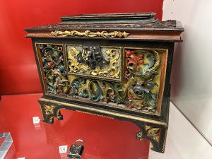 Wunderbare Truhen können nur mit einem versteckten Schlössersystem geöffnet werden. Viele geschnitzte Holzkästchen, die im Mittelalter anstelle von Blumen oder Pralinen als Geschenk übergeben wurden.