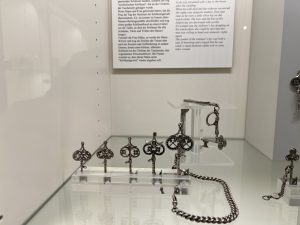 Schlüssel und Schlösser, versperrbare Opferstöcke, Kästchen, Kabinette, Tresore Handschellen und Keuschheitsgürtel, deren Verwendung nie bewiesen werden konnten. Wussten sie von einem Witwerschlüssel, mit dem ein Witwer kundtat, eine Frau zu suchen, um ihr die Schlüsselgewalt seines Hauses zu übergeben.