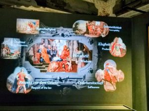Die 24 Prunkräume bilden ein nahezu unverfälschtes Raumkunstwerk, in dem sich die Ausstattungsphasen von Barock und Rokoko zu einem kostbaren Ensemble von besonderem Erlebniswert verbinden. Qualität und Umfang der erhaltenen, authentischen Raumausstattung mit über 500 Deckengemälden bilden den einzigartigen Rahmen für einen Eggenberg-Besuch.