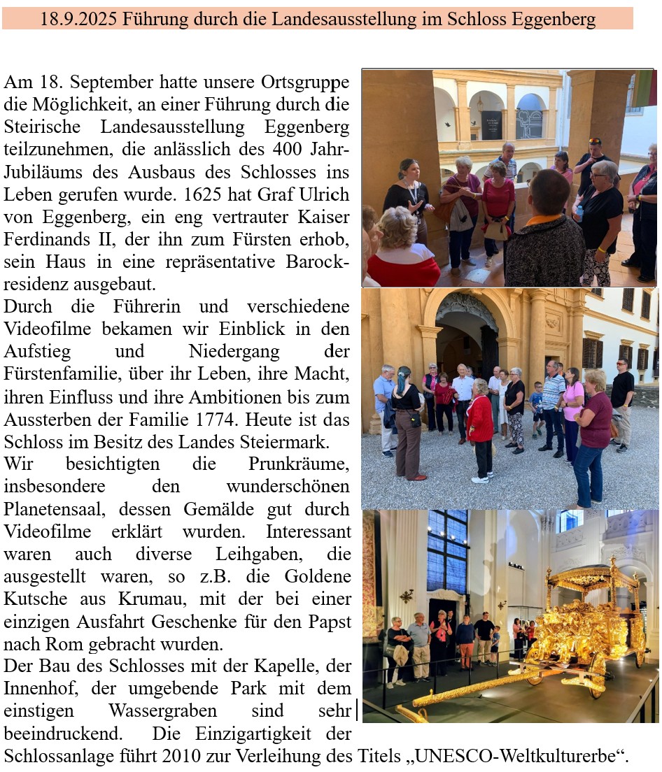 Seniorenbund Seiersberg – Besuch der Ausstellung Schloss Eggenberg 18.09.2025