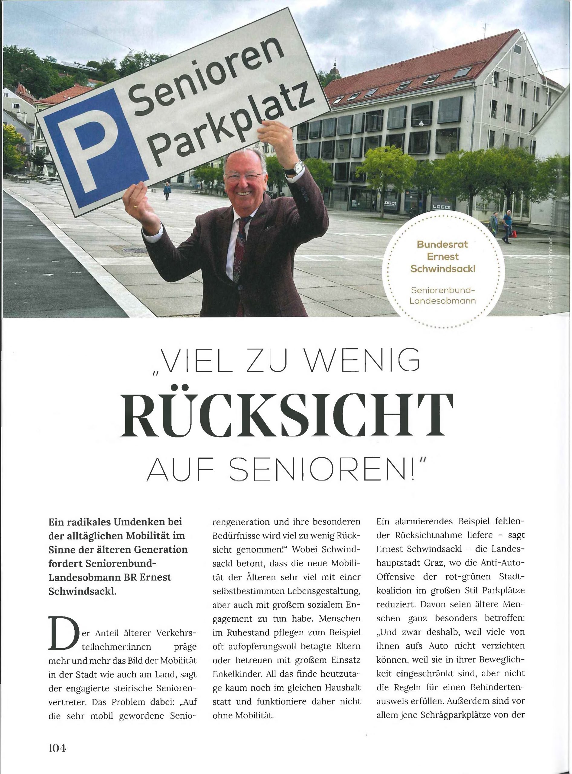 Im Magazin „Abenteuer Alter“ berichtet Bundesrat Ernest Schwindsackl, Landesobmann des Steirischen Seniorenbundes über ein radikales Umdenken bei der alltäglichen Mobilität im Sinne der älteren Generation.
