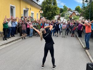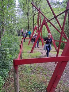 Jenny Vollmann und Arne Öhlknecht wärmten die BesucherInnen mit leichten Turnübungen auf, bevor sich die Bewegungshungrigen auf die diversen Routen begaben.